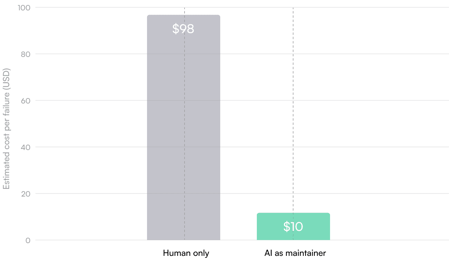 Weighted average: approximately 5 minutes per failure—a 94% reduction in human time.