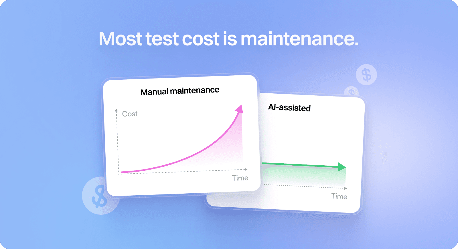 The gap exists because maintenance is fragmented. Ten minutes here debugging a selector. Twenty minutes there waiting for CI to confirm a fix. An hour lost to a flaky test that turns out to be a real bug. None of these feel significant in isolation. Together, they add up.